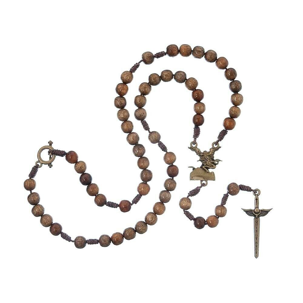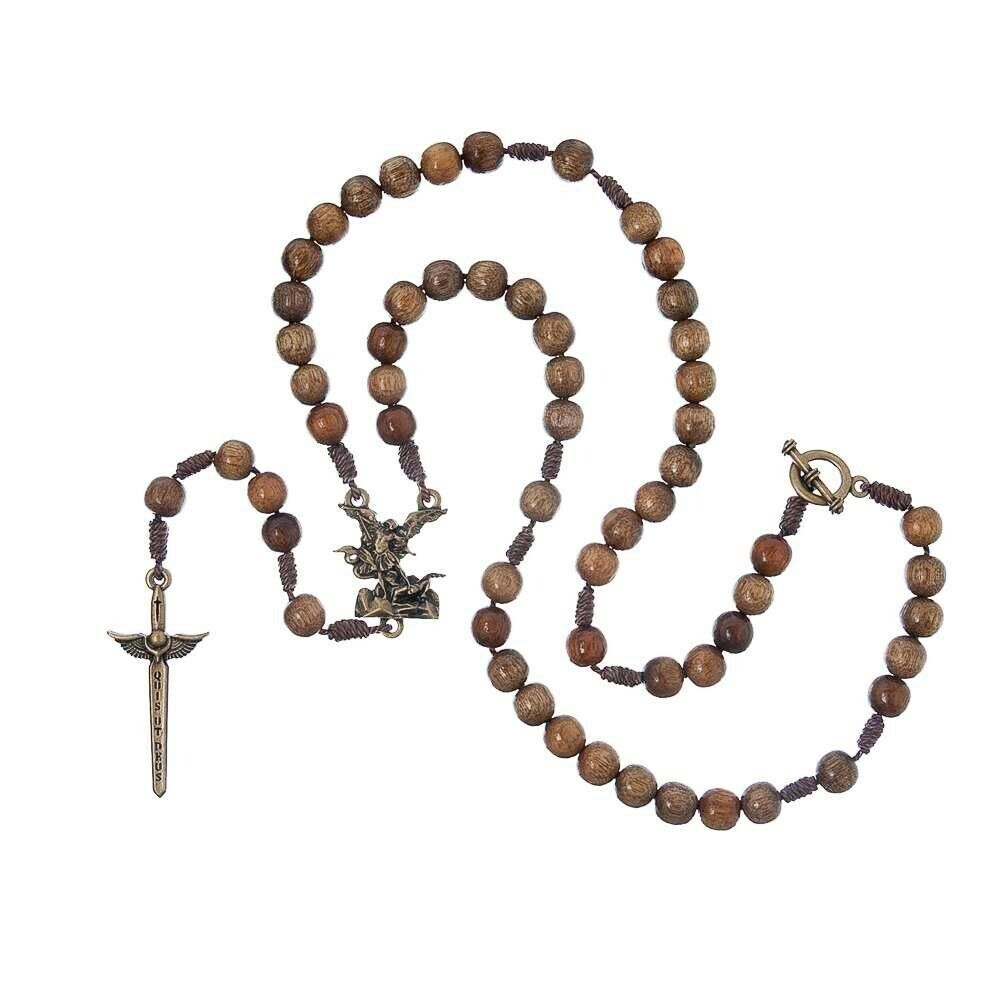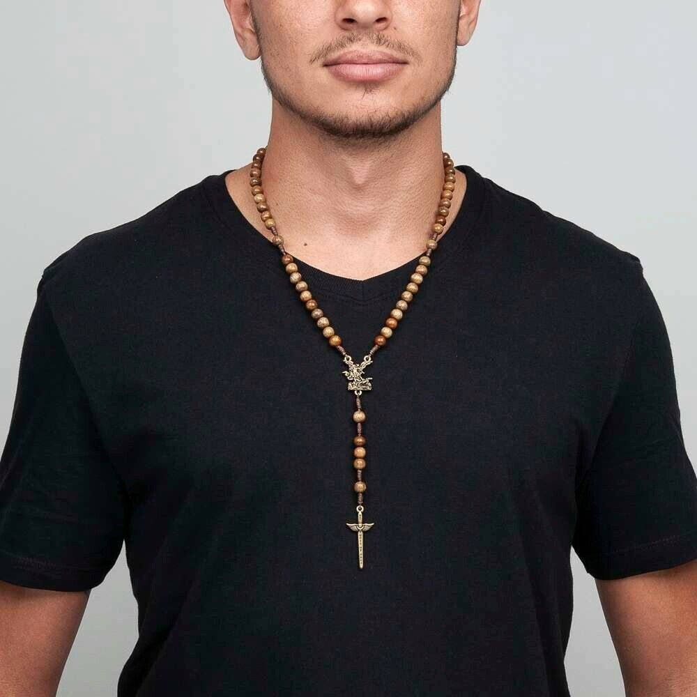 Wooden Men's Rosary Necklace of Saint Michael Archangel